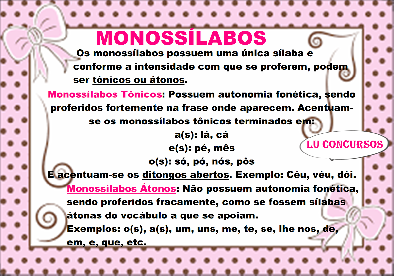 Exemplos De Monossílabos Tônicos - REVOEDUCA