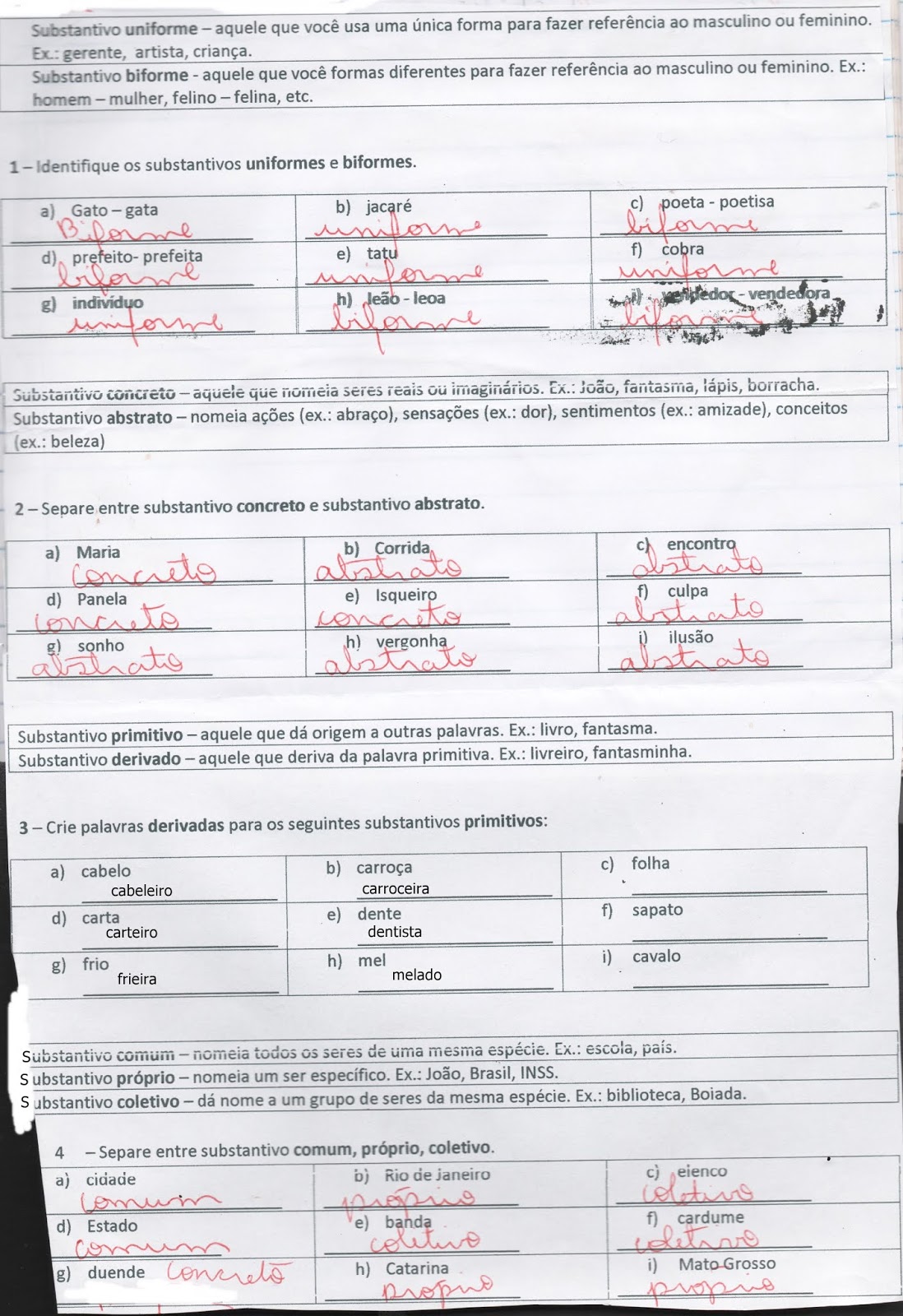 Substantivos uniformes são aqueles que apresentam uma única forma, que serve tanto para o masculino quanto para o feminino. Têm um só gênero e. A) sabendo que o substantivo se flexiona em gênero, como se faz o feminino da palavra cabrito? B) qual é o masculino do substantivo mulher? C) tanto os substantivos da letra “a” quanto os. Exercícios de substantivos para você estudar sobre os tipos e a classificação dos substantivos. Os substantivos nomeiam seres, pessoas, objetos, fenômenos, sentimentos, qualidades,. O documento apresenta 20 questões sobre classificação e tipos de substantivos em português, com respostas comentadas. As questões abordam tópicos como substantivos abstratos,. 10. 000+ resultados para substantivos biforme e uniformes substantivos, adjetivos e verbos.