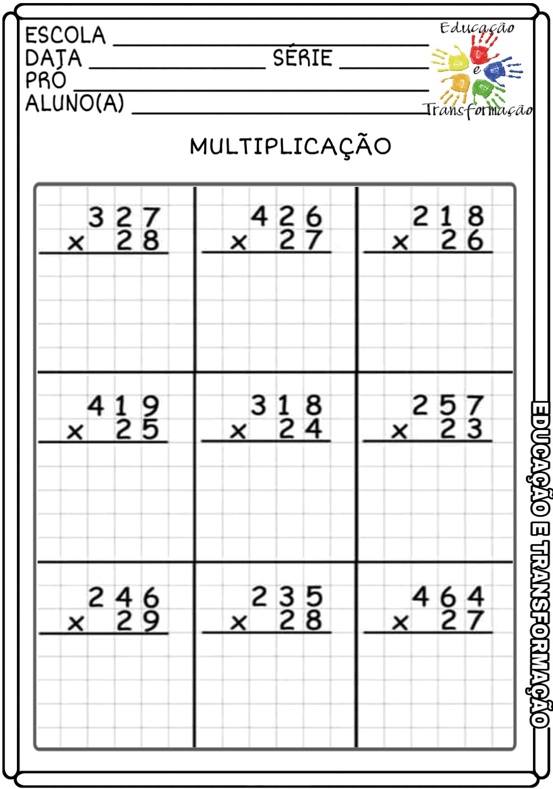Atividades de fixação variadas envolvendo a. Uma ótima forma de transmitir esse conhecimento é através de atividades de multiplicação, que estão selecionadas abaixo, voltadas especificamente para alunos do 3º ano. Sistema monetário brasileiro (cálculos com troco, comparação de preços). Atividade de matemática, com exercícios de multiplicação, proposta a alunos do quarto ou quinto ano. Disponível em word, pdf e gabarito.