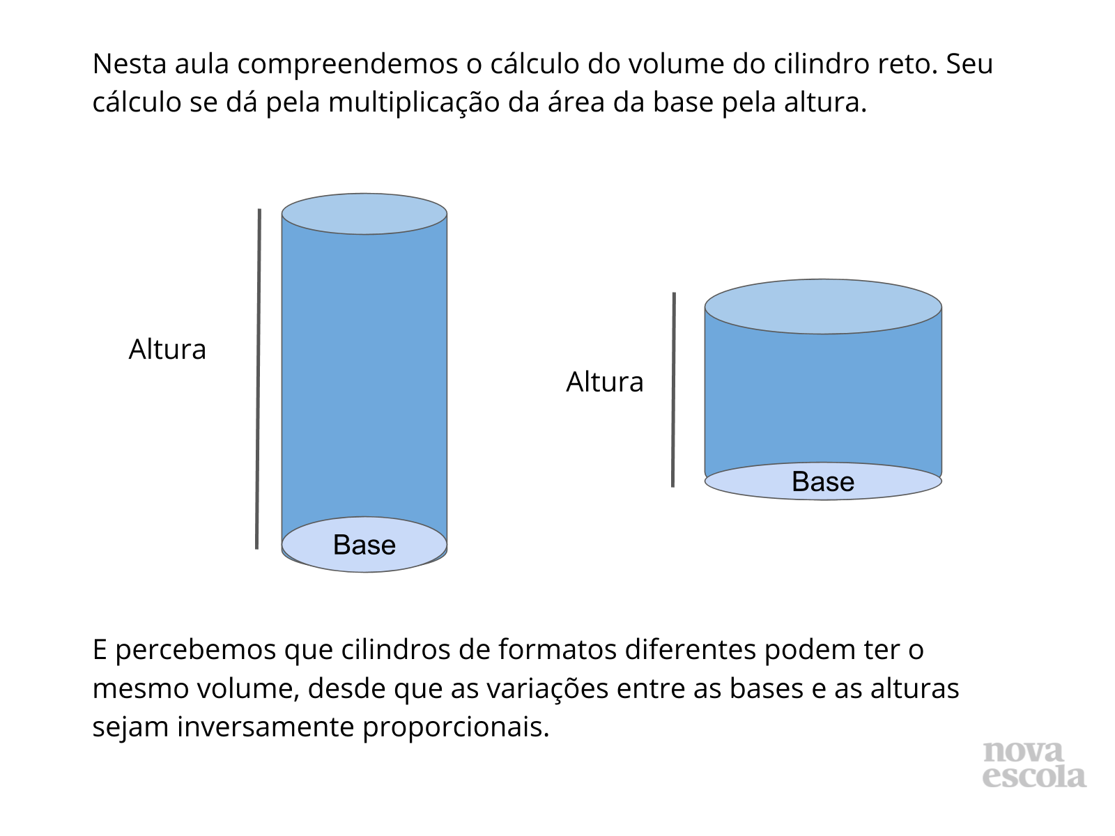 Uma vez que se sabe a área do círculo de base, o cálculo do volume do cilindro fica muito fácil. Basta multiplicar a área da base pela altura “h” do cilindro. Para calcular o volume de um cilindro, é necessário conhecer a área da base (que é um círculo) e a altura do cilindro. A fórmula básica para encontrar o volume é multiplicar a área da base. Nossa calculadora oferece duas formas de determinar o volume de um cilindro: Calcule o volume do cilindro usando altura e raio (ou diâmetro); Calcule o volume usando altura e a área da. Mostramos abaixo uma ferramenta matemática para calcular o volume do cilindro ou prisma circular, a partir de sua fórmula e com a nossa calculadora. Você só precisa digitar o raio e a.