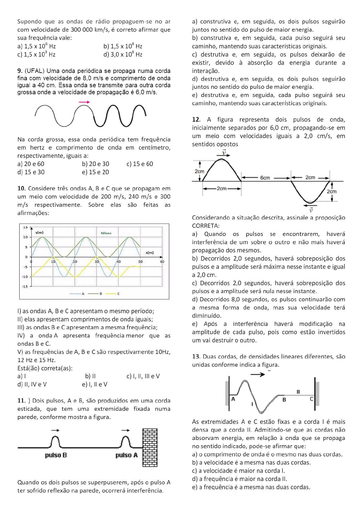 Teste seus conhecimentos por meio desta lista de exercícios sobre ondulatória, ramo da física que investiga as ondas e as oscilações. Teste seus conhecimentos por meio desta lista de exercícios sobre ondas, perturbações ocasionadas por uma fonte emissora que se propaga no tempo e no espaço. As ondas são fenômenos que transportam energia através de meios, podendo ser sonoras, eletromagnéticas ou mecânicas. No contexto do enem e vestibulares, a compreensão das. Calcule seu comprimento de onda sabendo que a frequência vale 2 hz.