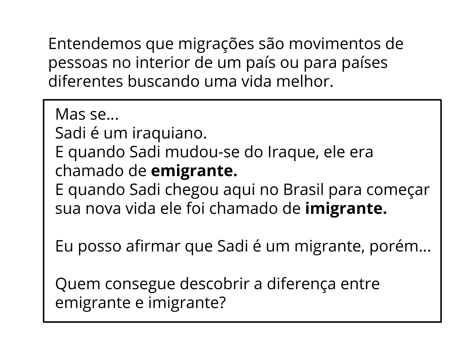 Diferenciar migração, imigração e emigração. O que é migrar? O que é imigrar? O que é emigrar? Conceituar migrante, imigrante ...