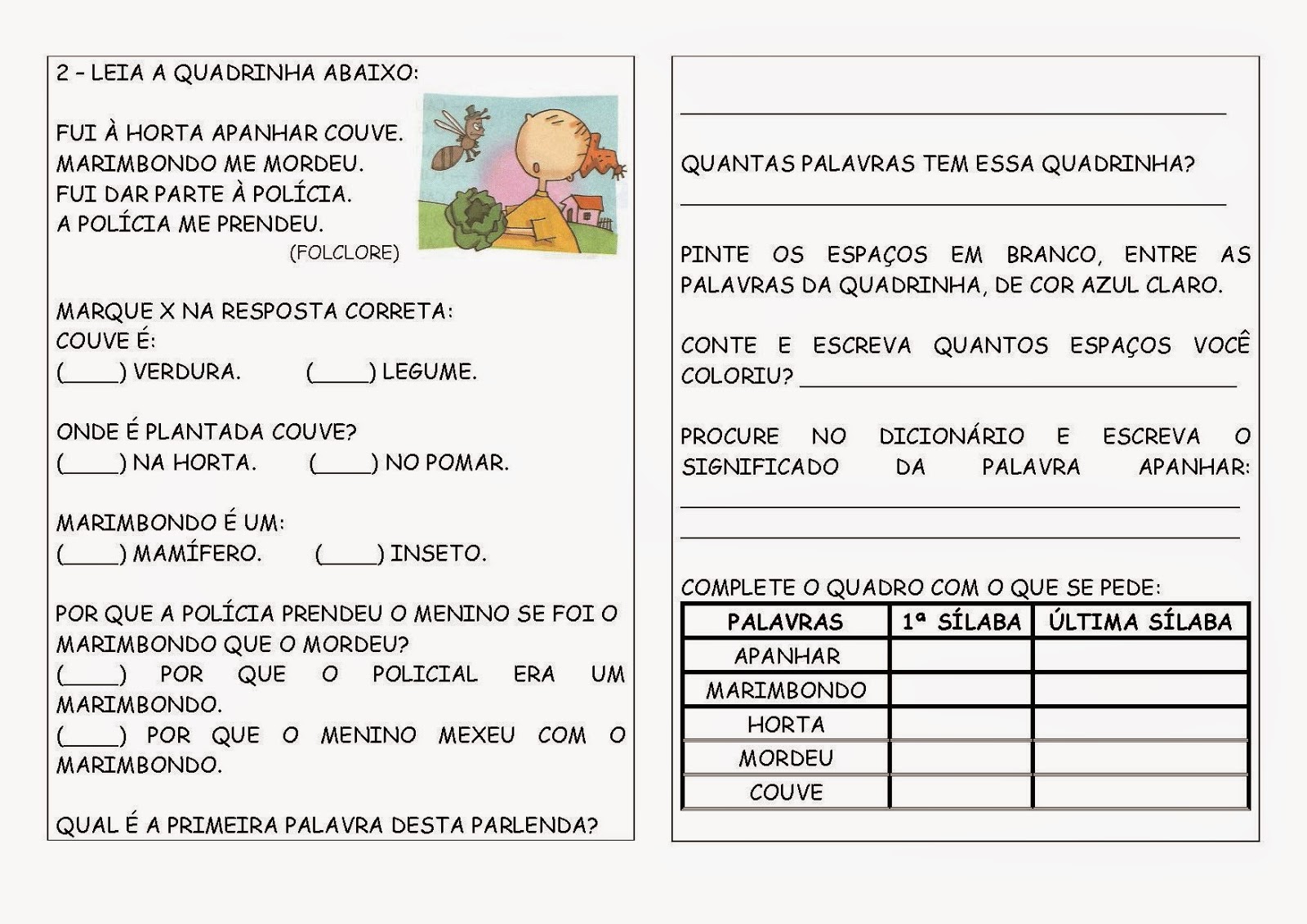 Quadrinhas Populares (alfabetização lúdica)