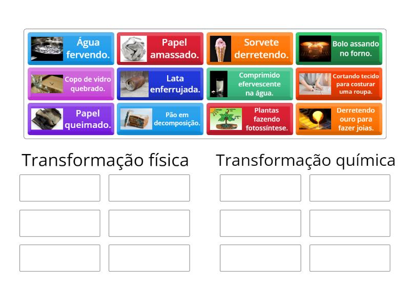 Em resumo, a diferença fundamental entre transformação química e física está na mudança ou não da composição química das substâncias. Em resumo, a principal diferença entre transformação química e física é que a transformação química resulta na formação de novas substâncias, enquanto a transformação física altera. Nas transformações físicas não se formam substâncias diferentes das que tínhamos no início, isto é, as substâncias continuam a ser as mesmas. Nas transformações químicas há. Transformação da matéria na qual ocorrem mudanças qualitativas na composição química de uma ou mais substâncias reagentes,.